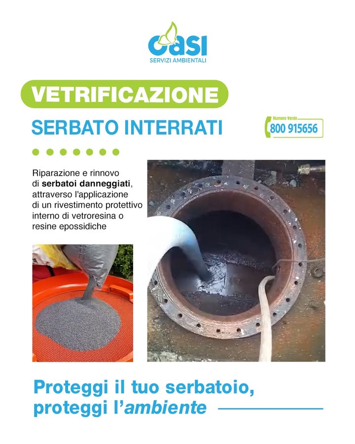 Leggi altro🔧 PROTEGGI IL TUO SERBATOIO, PROTEGGI L’AMBIENTE. 🌍 Servizio di Vetrificazione Serbatoi Interrati – OASI SERVIZI AMBIENTALI Hai un serbatoio interrato danneggiato, soggetto a corrosione o temporaneamente fuori servizio? Con il nostro inter...