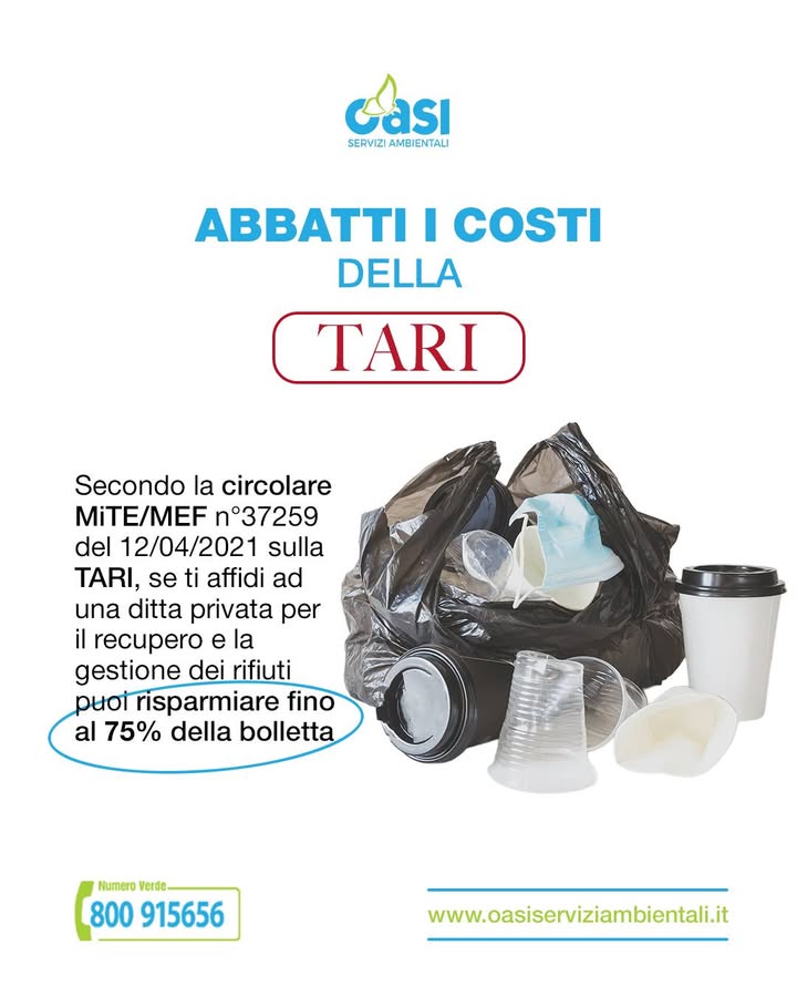 Leggi altroLa Circolare MiTE/MEF n. 37259 del 12/04/2021 sulla #TARI è un'opportunità d'oro per le aziende che scelgono di affidarsi a noi per il recupero e la gestione dei rifiuti! ♻️ Con un contratto di almeno cinque anni, puoi ottenere uno #sgravio ch...